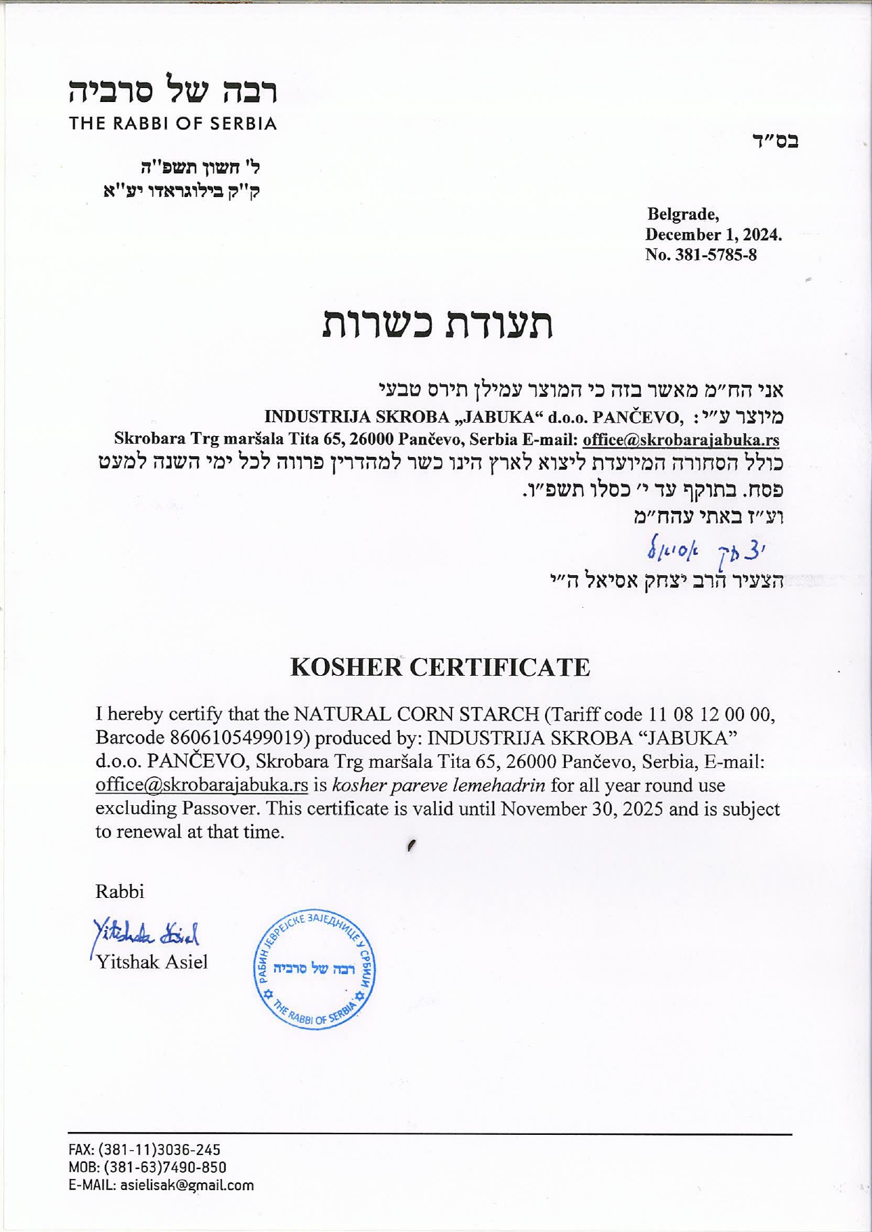Uspešno poslovanje Industrije skroba "Jabuka" zasniva se na iskustvu stečenim više od jednog veka bavljenja mokrom preradom kukuruza. Od suštinskog značaja za uspeh jeste i potpuno razumevanje potreba u industrijama u kojima proizvodi od kukuruza predstavljaju jednu od osnovnih sirovina ili bar dodatak koji doprinosi boljem kvalitetu njihovih proizvoda. Stoga će dalji razvojni put D.O.O indistrije skroba ’’Jabuka’’ biti usmeren pre svega ka unapređenju kvaliteta, rešavanju ekoloških zahteva, očuvanju životne sredine i proširenju proizvodnog programa osvajanjem novih proizvoda, kao i ka uspostavljanju i očuvanju čvrste i dugoročne saradnje sa kupcima kako bi se u potpunosti ispunili njihovi zahtevi i očekivanja.