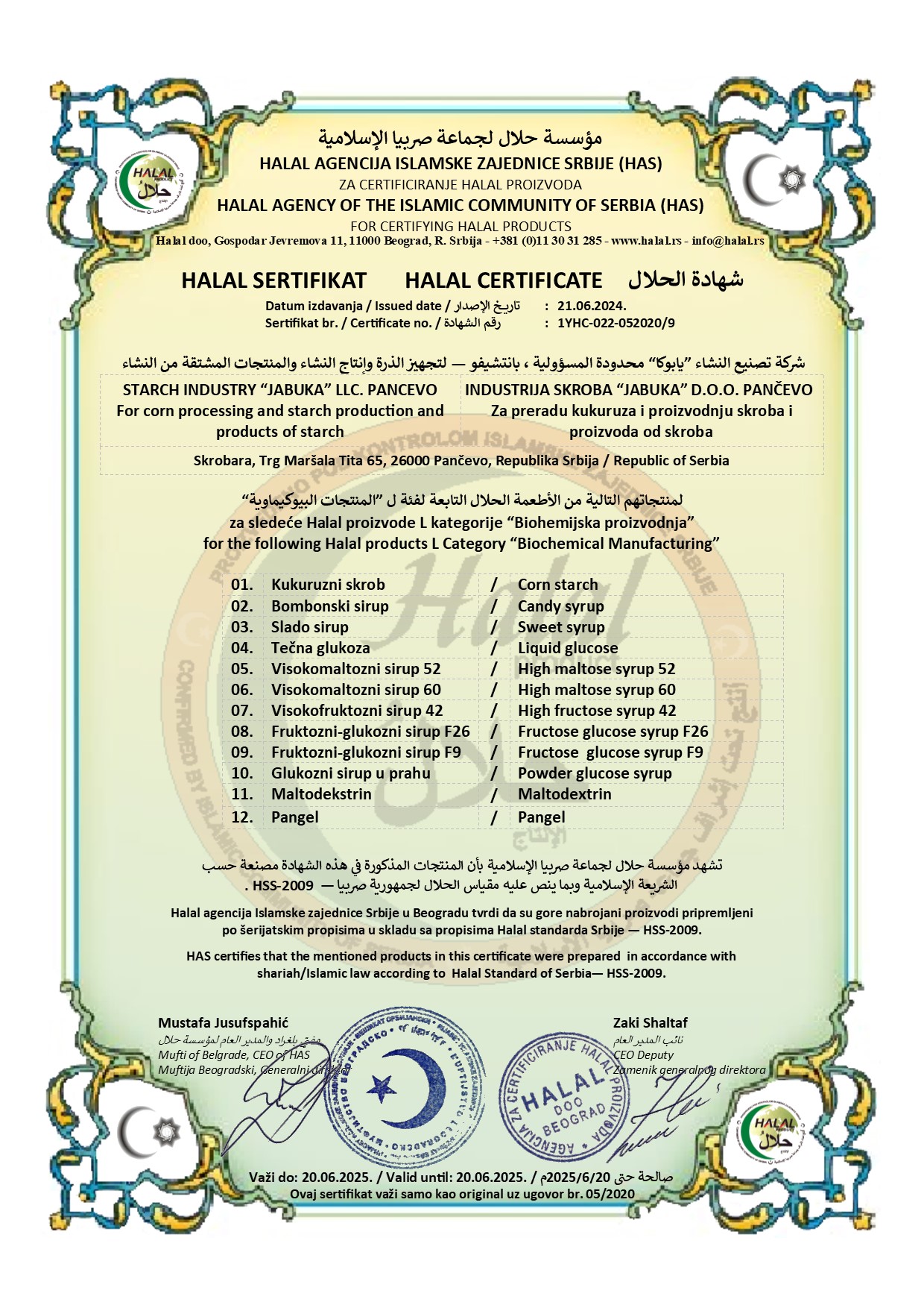 Fabrika raspolaže opremom za mokru preradu kukuruza kapaciteta 180 t/dan, pogonom proizvodnje glukoznih sirupa kapaciteta 36 t/dan, linijom sušenja proizvoda, opremom za proizvodnju modifikovanih skrobova, kao i silosima za skladištenje žitarica kapaciteta 20.000 t.